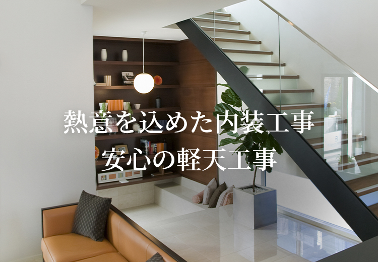 当社は、戸建てやマンションなどの住宅から、店舗、オフィス、事務所、公共施設まで、様々な建物にも幅広くご対応可能です。また活気溢れる若手職人も多数所属しており、体力やフットワークの軽さを活かした、迅速で高品質な施工をお届けいたします。